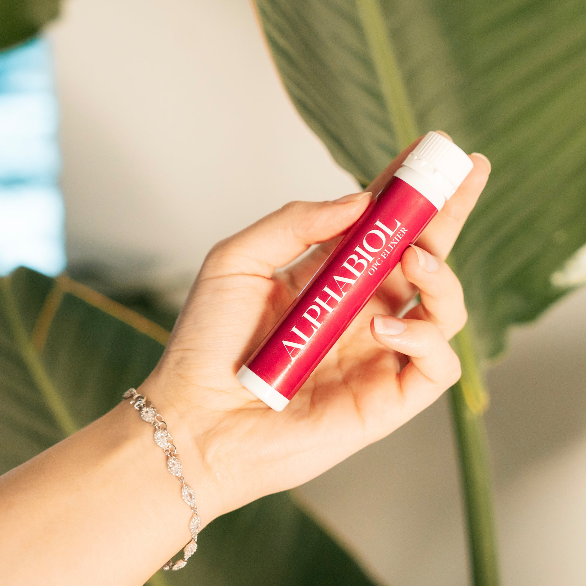 Flüssigkeit kann vom Magen leichter aufgenommen werden als Tabletten, so dass die Inhaltsstoffe von ALPHABIOL dem Körper effizient zur Verfügung stehen. Sie verteilen sich im Körper über die Blutgefäße und gelangen in die tieferen Hautschichten, während die Wirkstoffe von Cremes und Lotionen oftmals nur in die oberen Hautschichten eindringen können. Die Trinkampullen sind einfach und praktisch in der Anwendung.